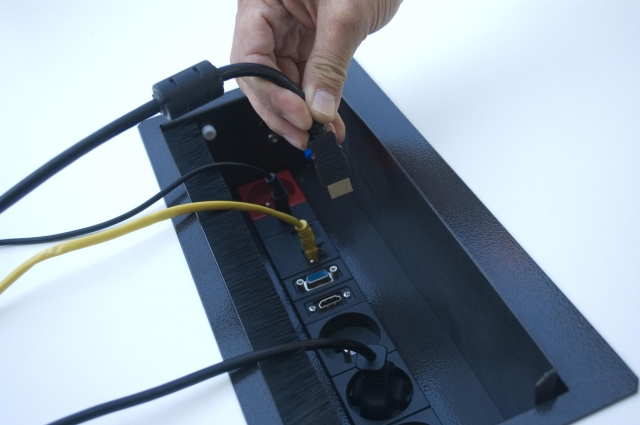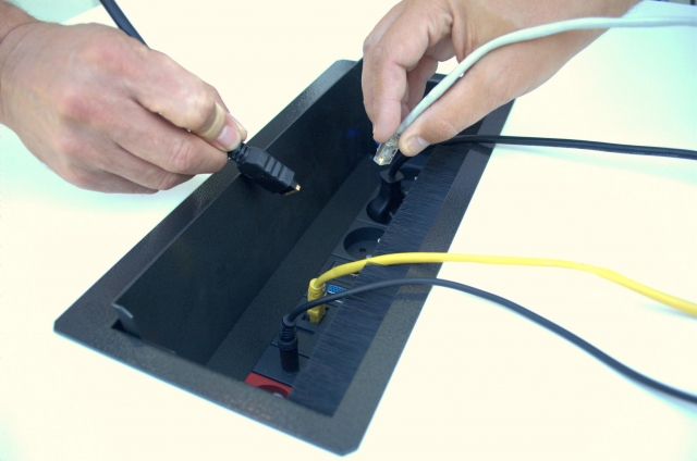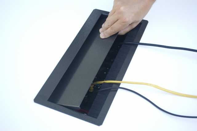Office Box to nowatorskie rozwiązanie w zakresie dystrybucji sygnałów wysoko i nisko prądowych w obrębie stanowiska pracy. Office Box integruje w sobie kasetę z przepustem szczotkowym oraz ramkę z dwustronnym dostępem. Dzięki ruchomym elementom moduły mogą być demontowane i wymieniane po zamontowaniu Office Box. Prosta instalacja umożliwia standardowe umieszczenie w blacie. Wsporniki montażowe pozwalają na pracę w szerokim zakresie grubości blatu od 12mm do 50mm